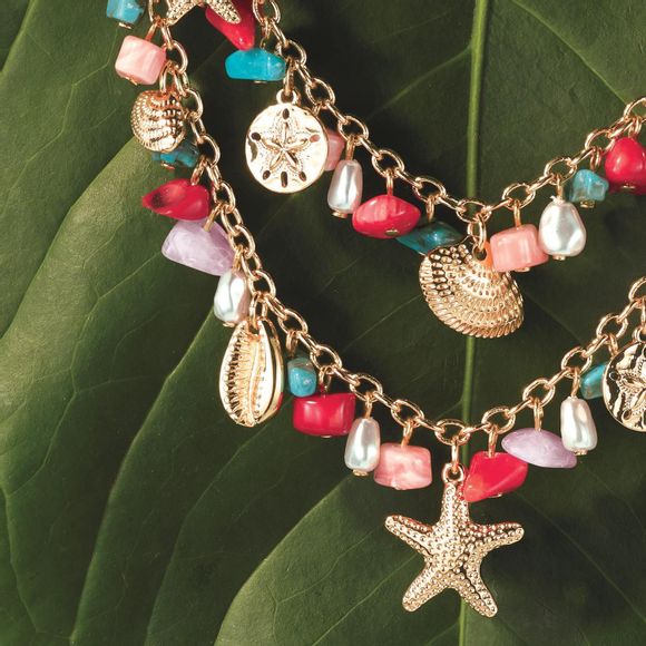 Dress up your summer outfit with some seaside charm necklace, earrings, rings and bracelets. The Under the Sea Collection is goldtone with coral and turquoise colored accents. Cute indeed! Brand new for summer also is Tutti Fruity Collection. Lots of bright colored gems that make up fruit designs. They scream summer and fun! Avon brought back anklets too. So happy to see them back in the brochure!